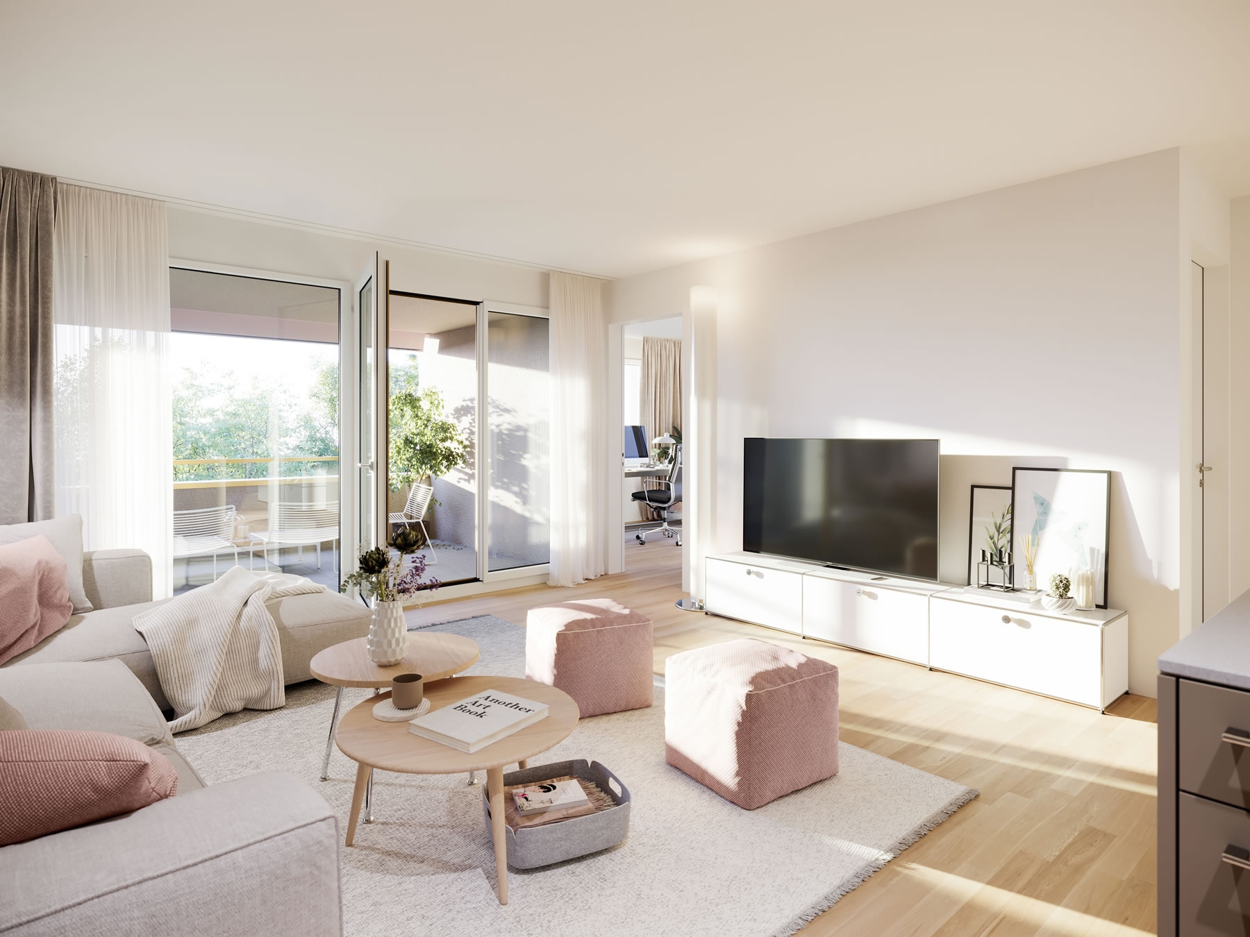 Visualisierung des Wohnzimmers einer Wohnung im Sonnenhof Dietikon